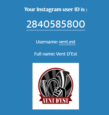 Intéressons-nous au fonctionnement d’Instagram. Il faut comprendre que si le réseau social permet de modifier à tout moment son nom d’utilisateur (précédé par un @), chaque compte se voit attribuer à sa création un identifiant utilisateur unique et inaltérable, le “User ID”. Bien que celui-ci ne soit pas visible sur la plateforme, de nombreux sites internet permettent de le consulter gratuitement (comme ici). OpenFacto en parlait justement dans son dernier billet. Dans notre cas, il suffit donc d’entrer le nom d’utilisateur du compte de Vent d’Est “@vent.est” sur l’un de ces sites pour obtenir son User ID, le n°2840585800.