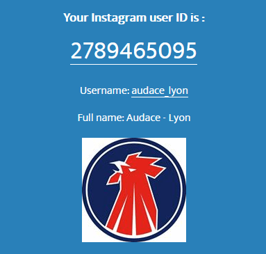 En appliquant la même méthode pour le compte Instagram du groupe Audace, on trouve que son User ID est le n°2789465095.