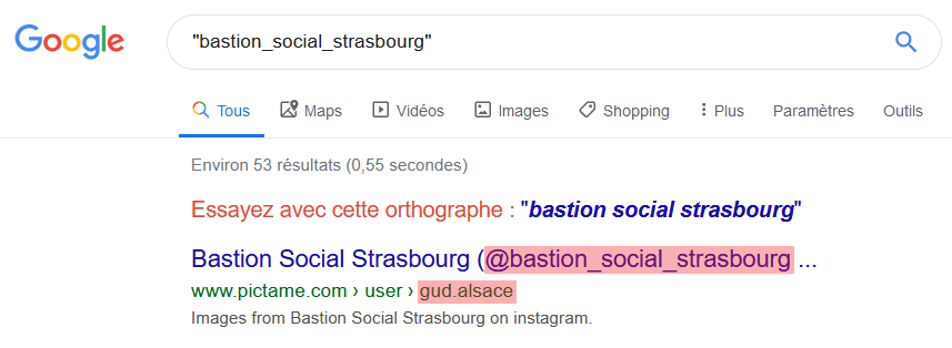 Une recherche sur Google “bastion_social_strasbourg” donne donc ce résultat: